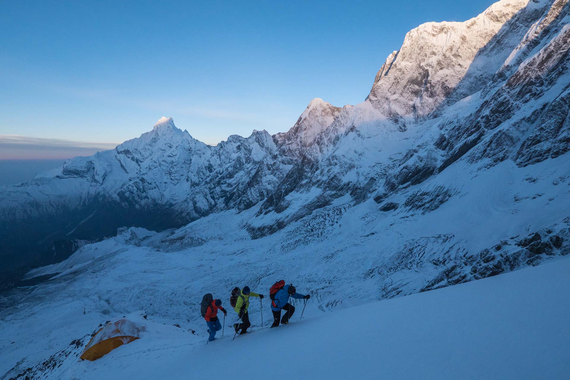 “Bola zima, vietor a padal hustý sneh… posúvali sme sa neskutočne pomaly, a všetko sa drolilo. Bola to obria výzva, len nájsť bivak bolo snáď najťažšie na svete.”